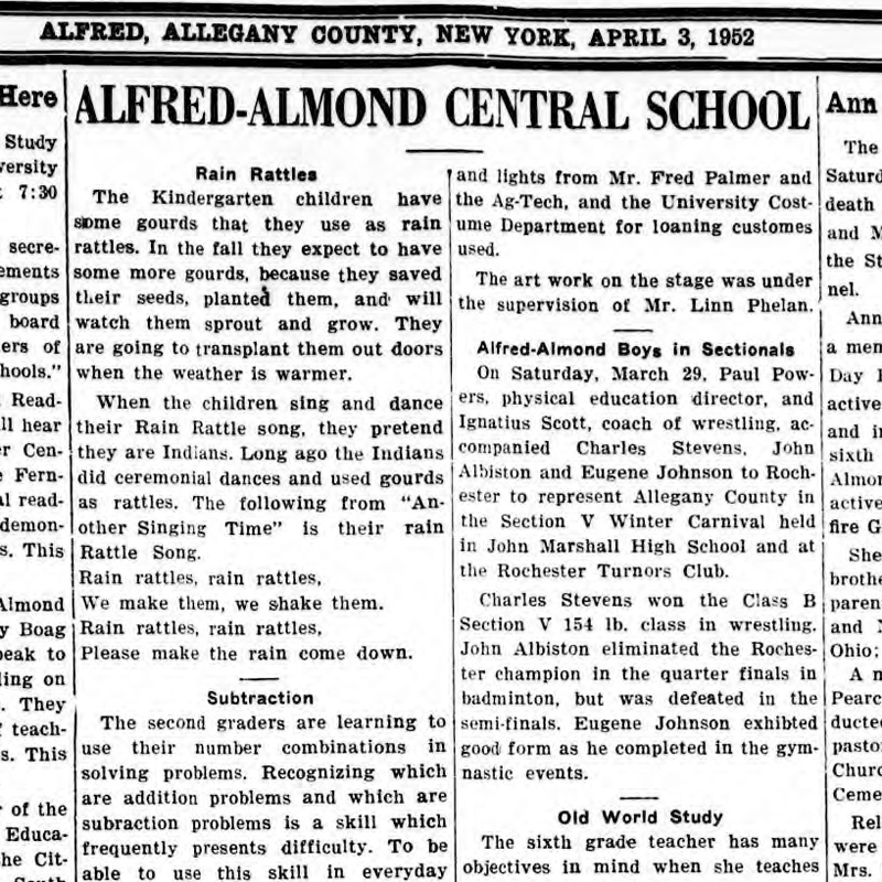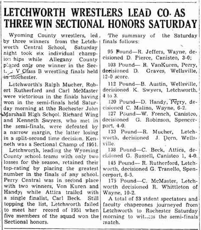 Letchworth [NY] 3, Perry [NY] 2, Wayne [NY] 2, Alfred-Almond [NY] 1, Attica [NY] 1, Canisteo [NY] 1, Spencerport [NY] 1, Wellsville [NY] 1,
