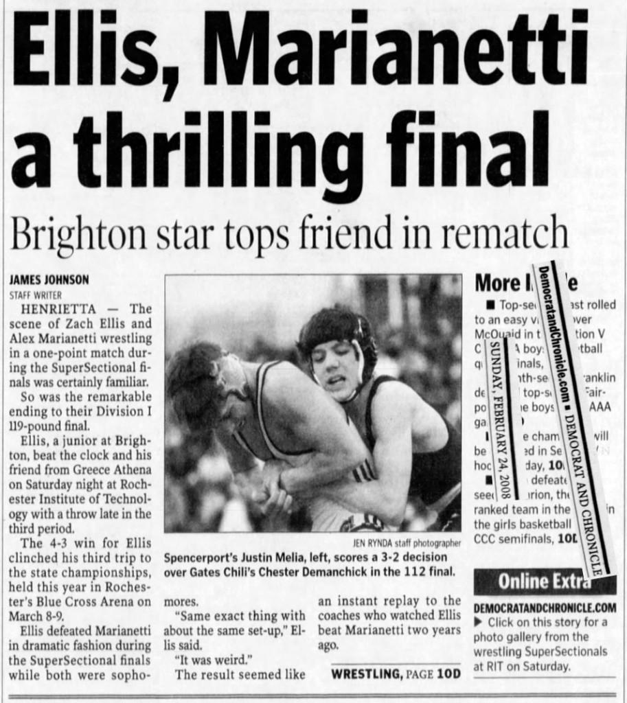 Adam Hill (Pembroke) > Kyle Gravino (Lyons) major decision 10-0