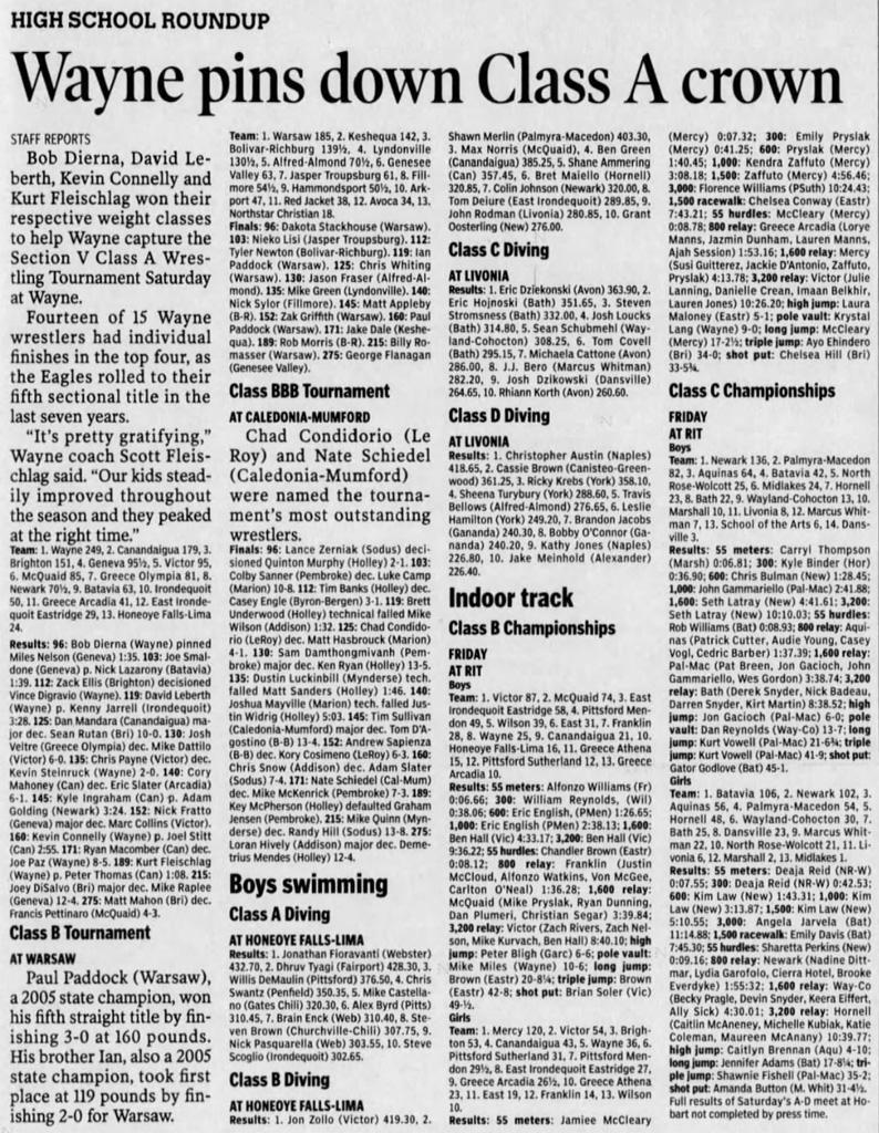 Kurt Freischlag (Wayne) > Peter Thomas (Canandaigua) fall 1:08