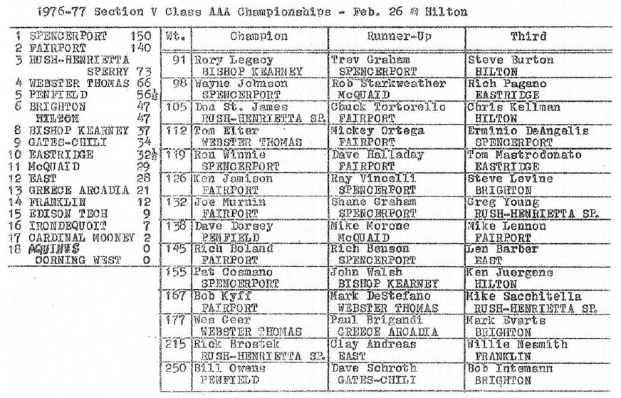 Joe Murnin (Fairport) > Shane Graham (Spencerport) forfeit