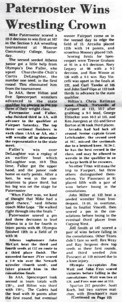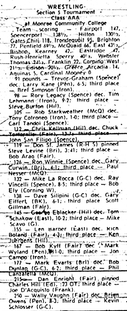 Trevor Graham (Spencerport) > Larry Kane (Penfield) decision 6-5