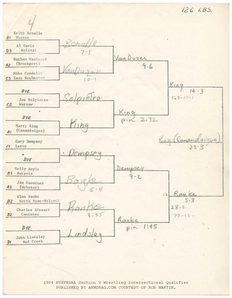 126 Marty King (Canandaigua) > Elon Ranke (NRW) superior decision 23-3