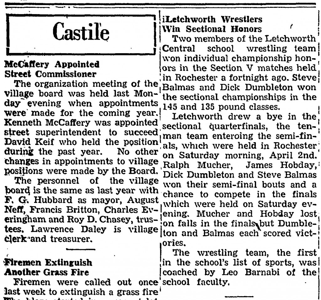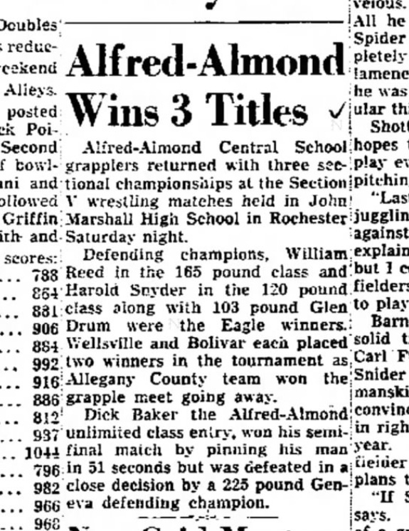 Geneva [NY] 4, Alfred-Almond [NY] 3, Bolivar [NY] 2, Wellsville [NY] 2, Letchworth [NY] 1,