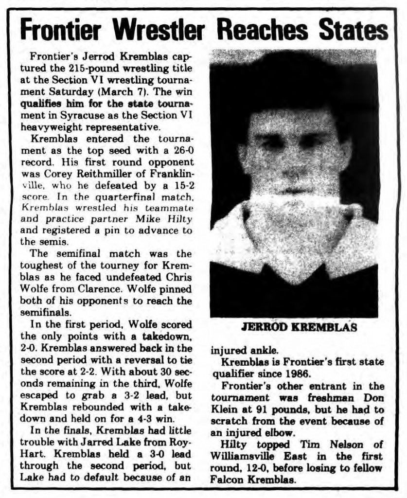 Craig Hinkley (Newfane) > Ken Rowe (Ripley)