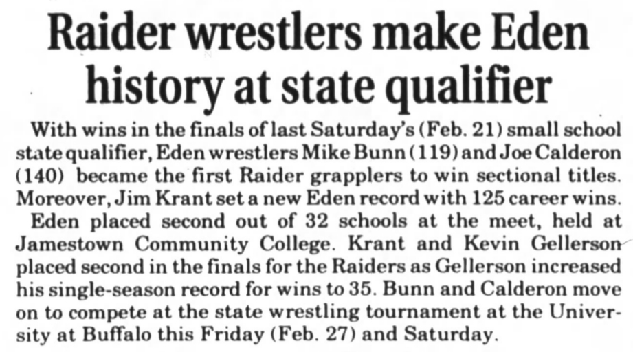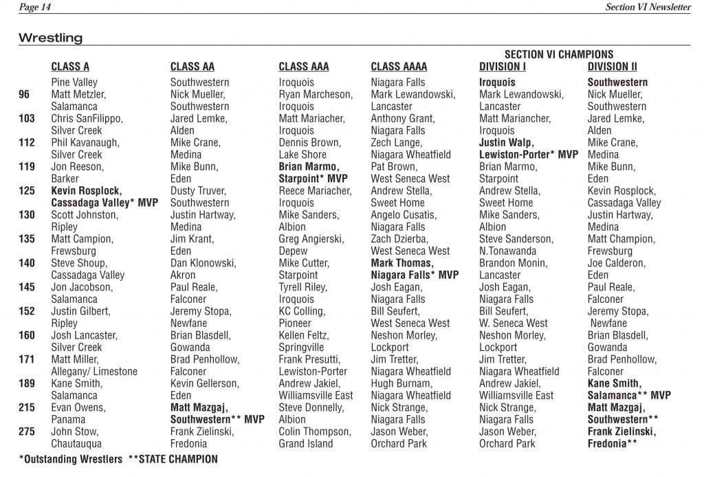NYSPHSAA Section VI 54th Annual Wrestling Championships and 41st Annual State Qualifier (D2)