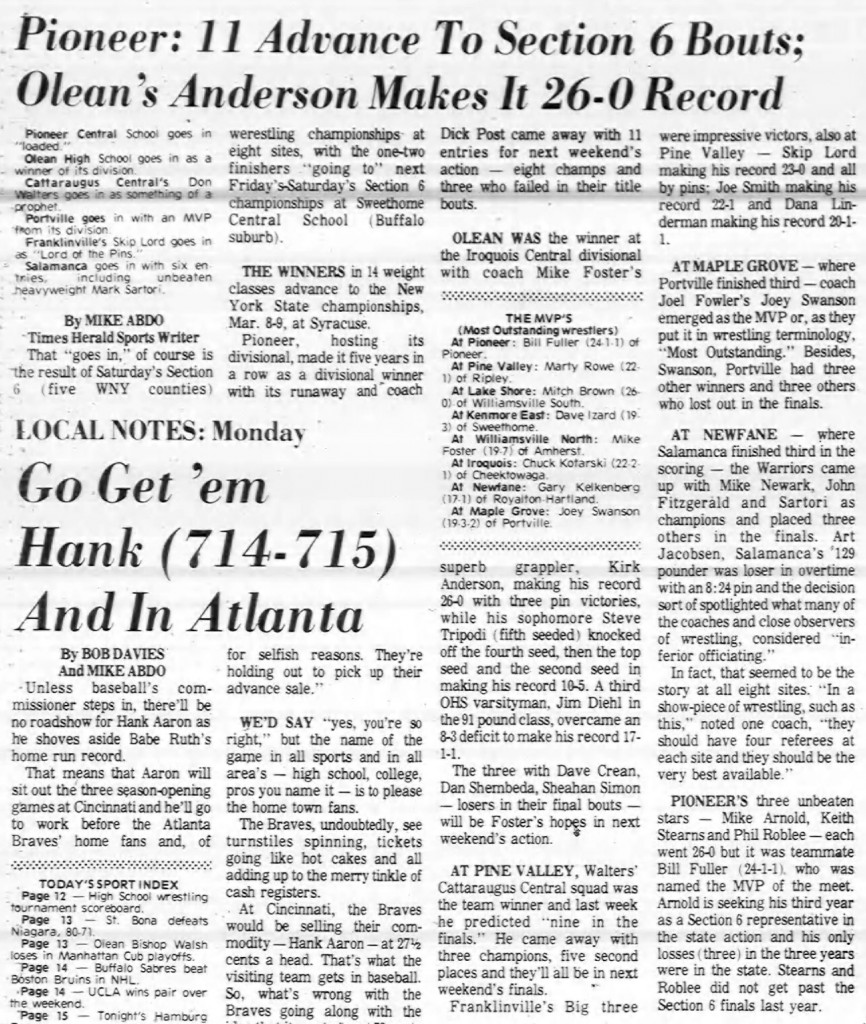 Dan Woodfield (MG) > Jim Payne (Portville) decision 3-0
