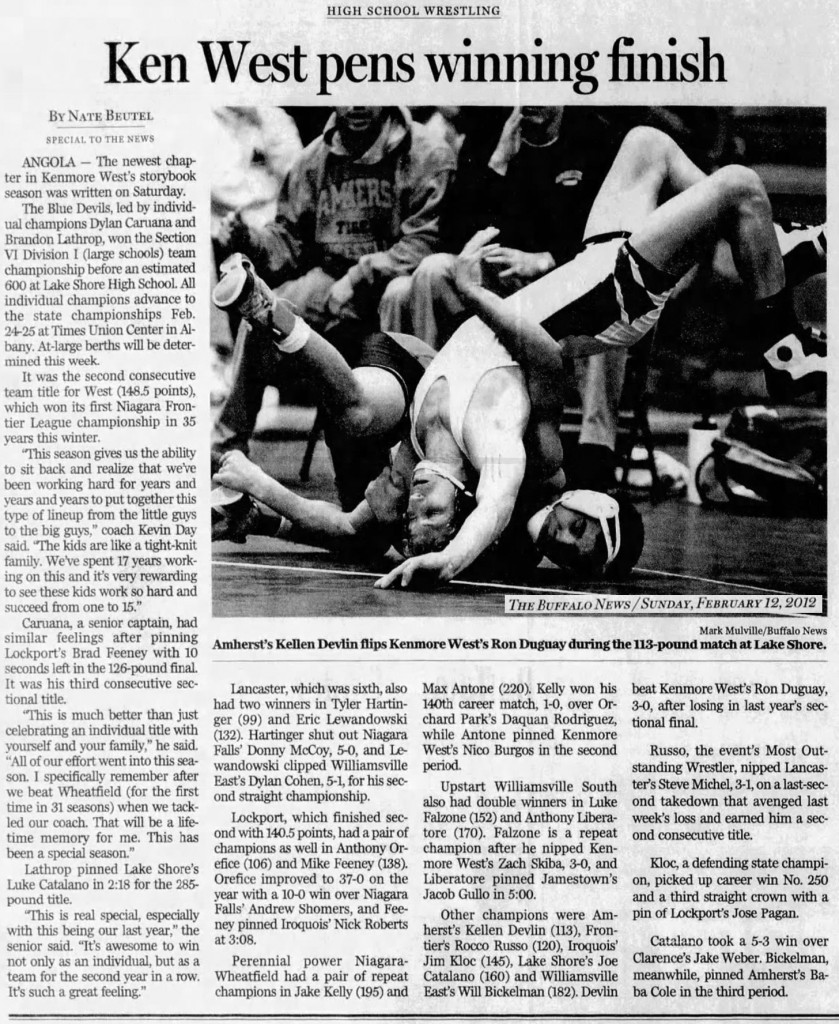 126 Dylan Caruana (KW) > Brad Feeney (Lockport) fall 5:51