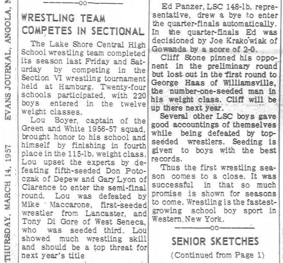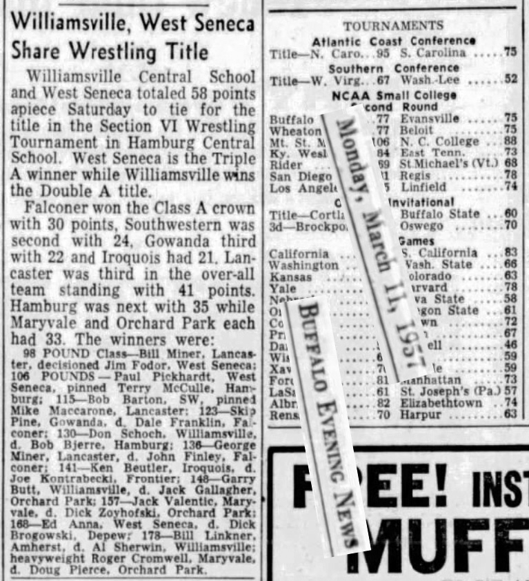 Don Schoch (Williamsville (Class AA)) > Bob Bjerre (Hamburg) decision