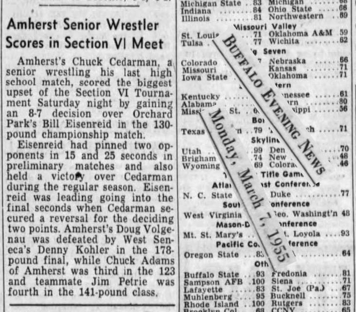 127 Chuck Cederman (Amherst) > Bill Eisenried (OP) decision 8-7