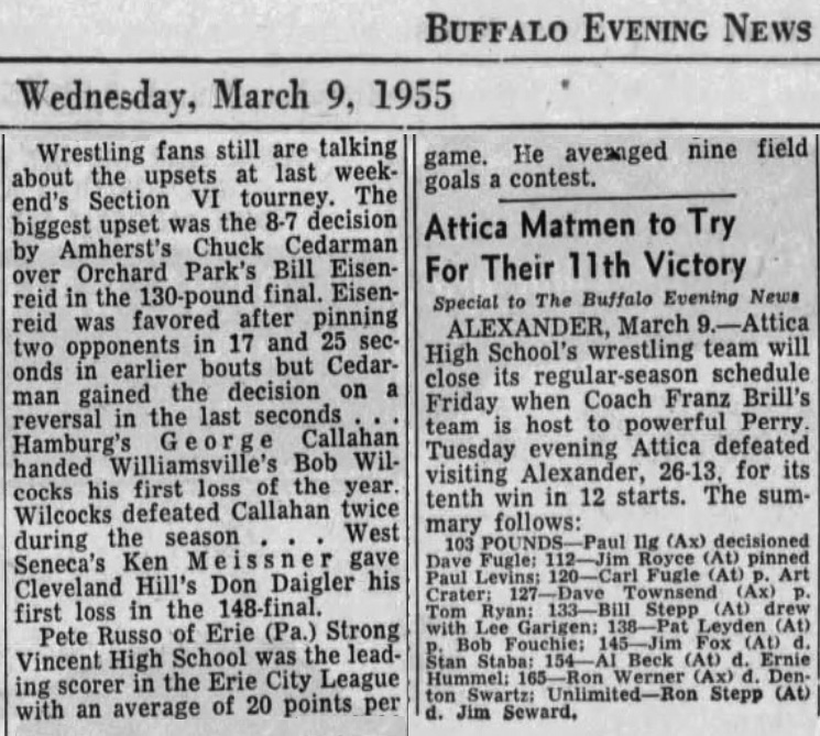145 Dick Shoup (Falconer) > Steve Lewis (Williamsville) decision