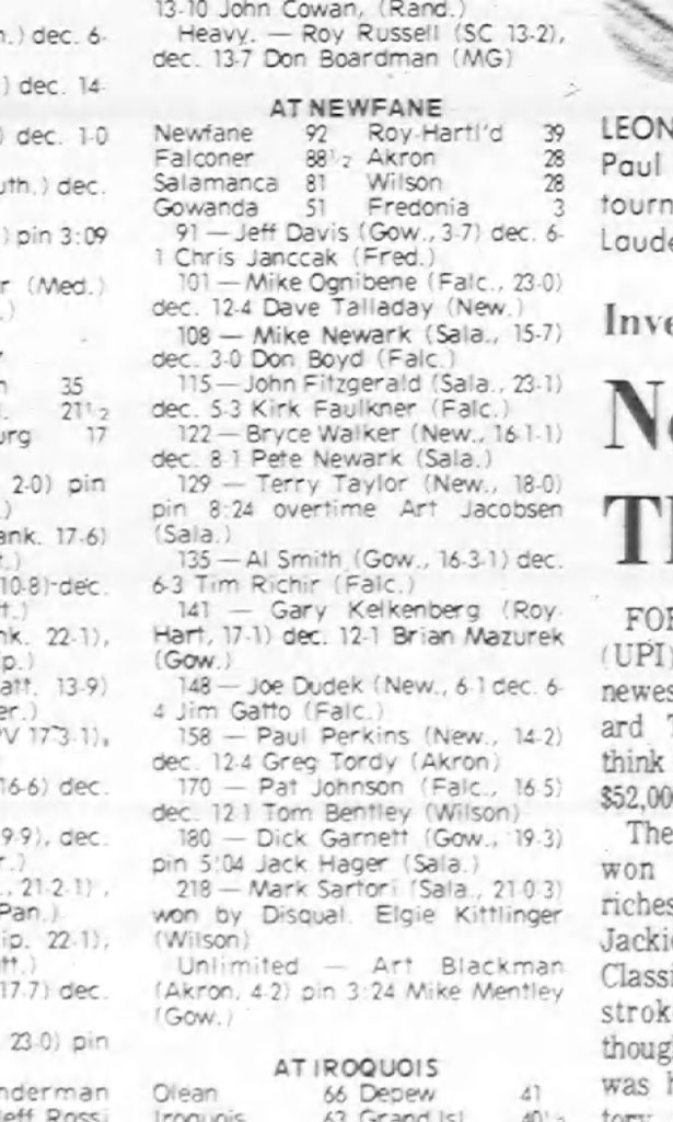 155 Paul Perkins (Newfane) > Greg Tordy (Akron) decision 12-4