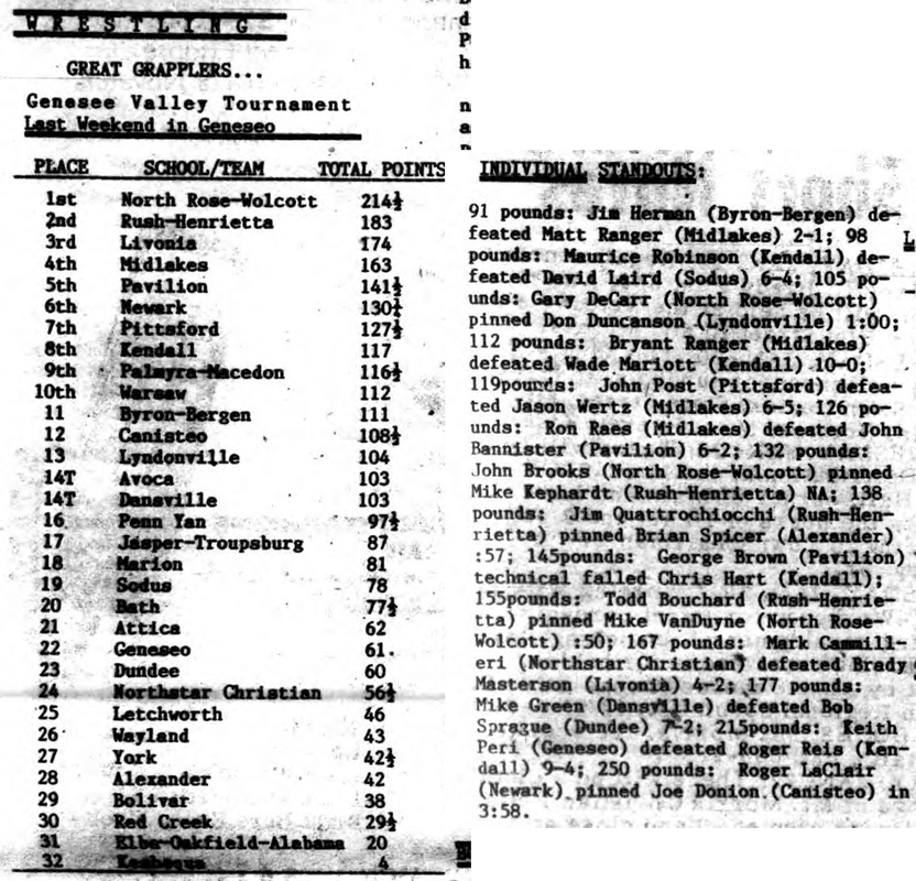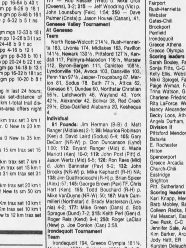 98 Maurice Robinson (Kendall) > David Laird (Sodus) decision 6-4