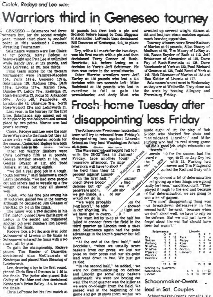 215 Marty Redeye (Salamanca) > John Schoonover (Livonia) decision 3-1