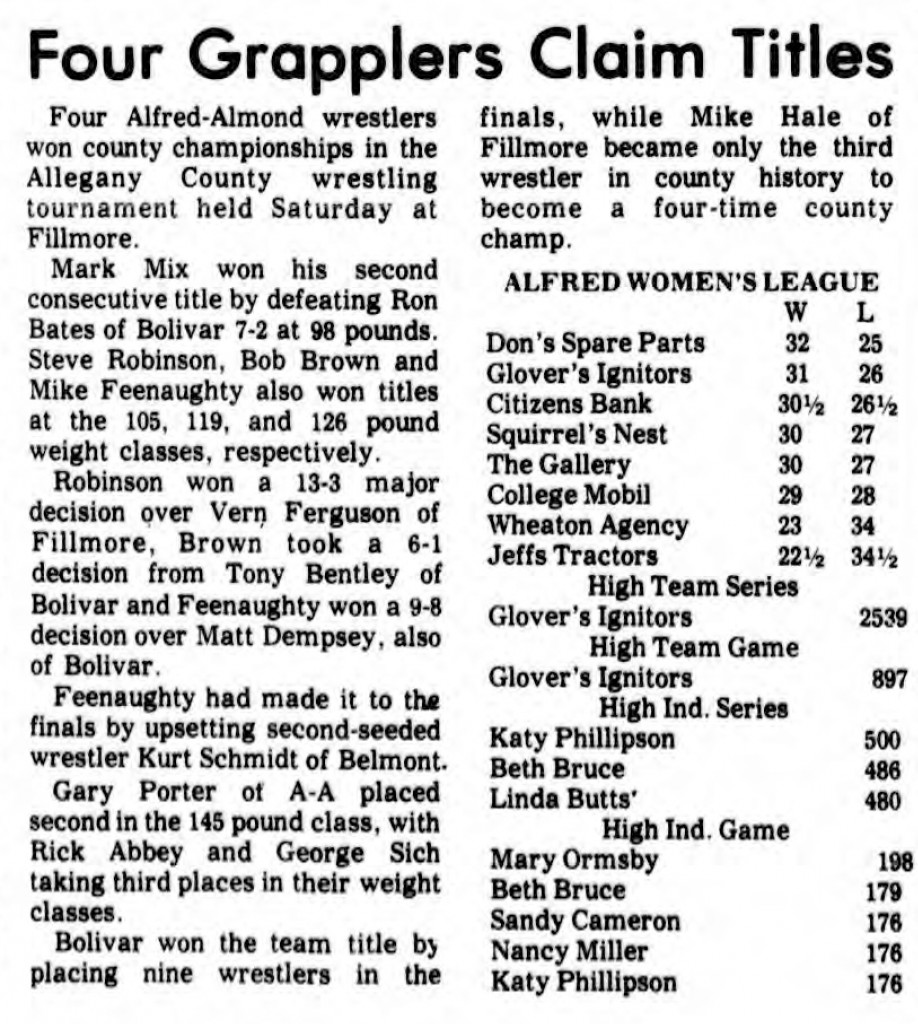 Bolivar [NY] 52, Cuba [NY] 39.5, Belmont [NY] 34.5, Alfred-Almond [NY] 33.5, Fillmore [NY] 16.5