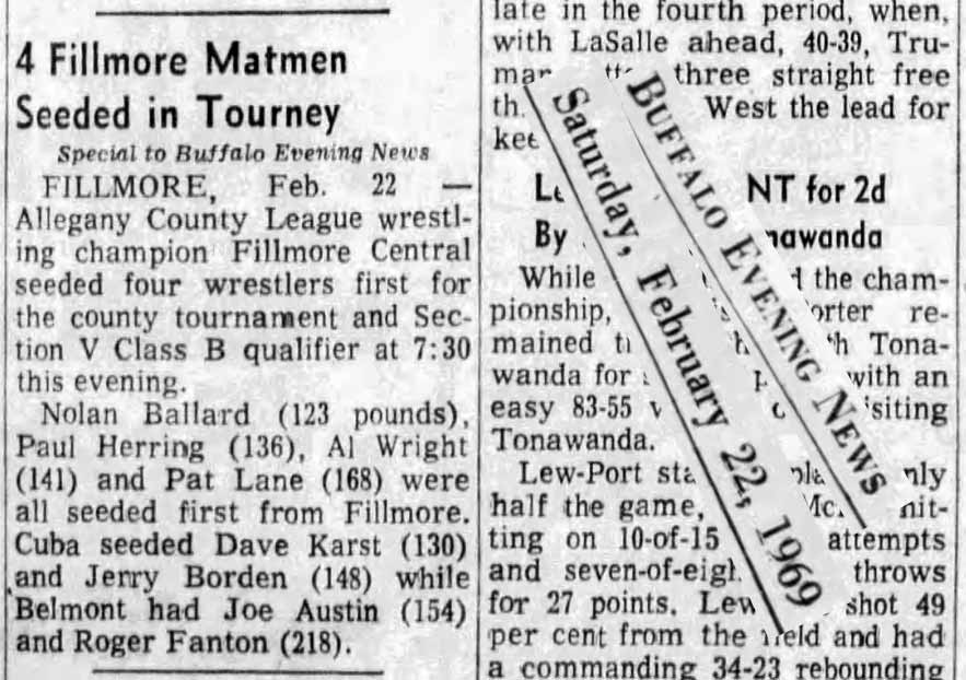 Joe Austin (Belmont) > Dan Bennett (Fillmore) fall 3:30
