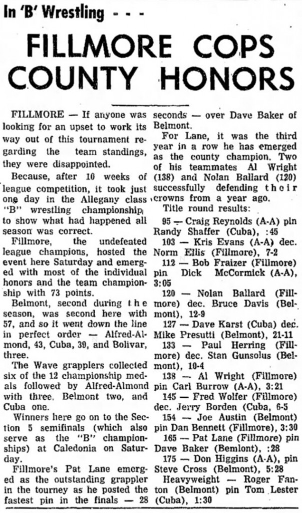 Fillmore [NY] 73, Belmont [NY] 57, Alfred-Almond [NY] 43, Cuba [NY] 39, Bolivar [NY] 3