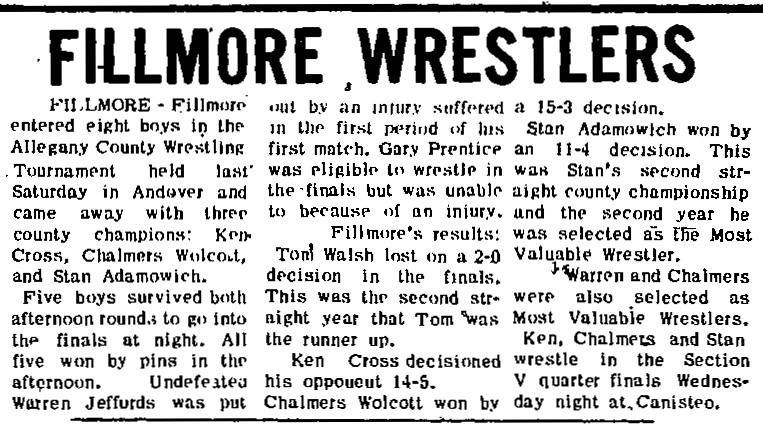 Alan Edwards (Cuba) > Tom Walsh (Fillmore) decision 2-0