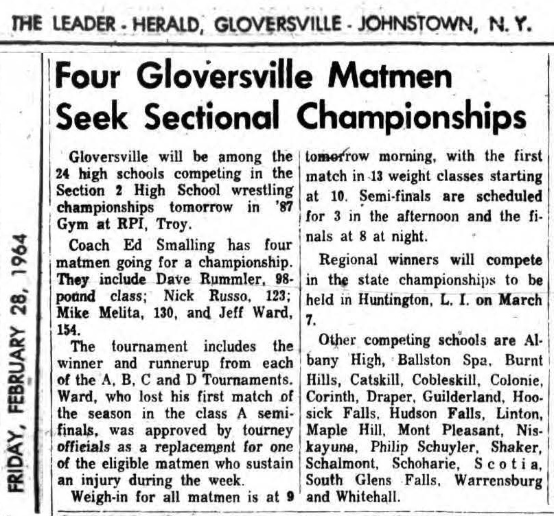 Jeff Ward (Gloversville) > Bob Hecker (Scotia) decision 2-0 (1OT)