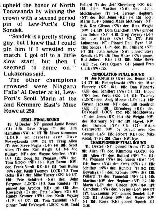 Pete Schiffert (NW) > Sam Runfola (Tonawanda) decision 8-2
