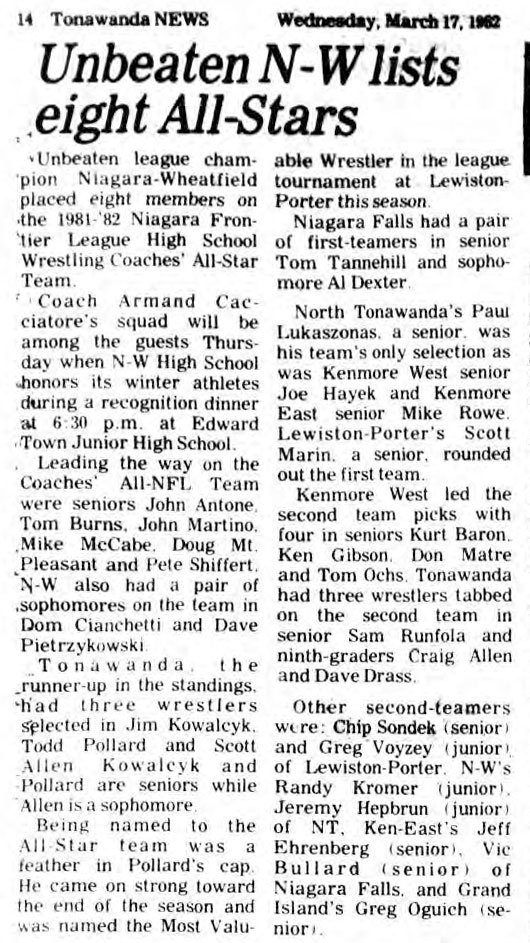 Jim Kowalcyk (Tonawanda) > Randy Kromer (NW) decision 10-8