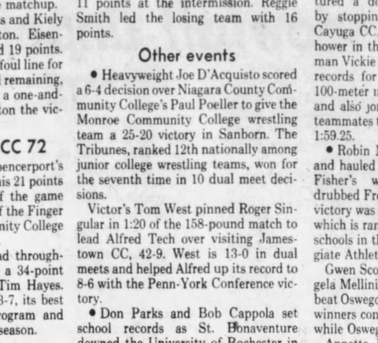 Bob Sluberski (NCCC) > Joe Morone (MCC) decision 7-6