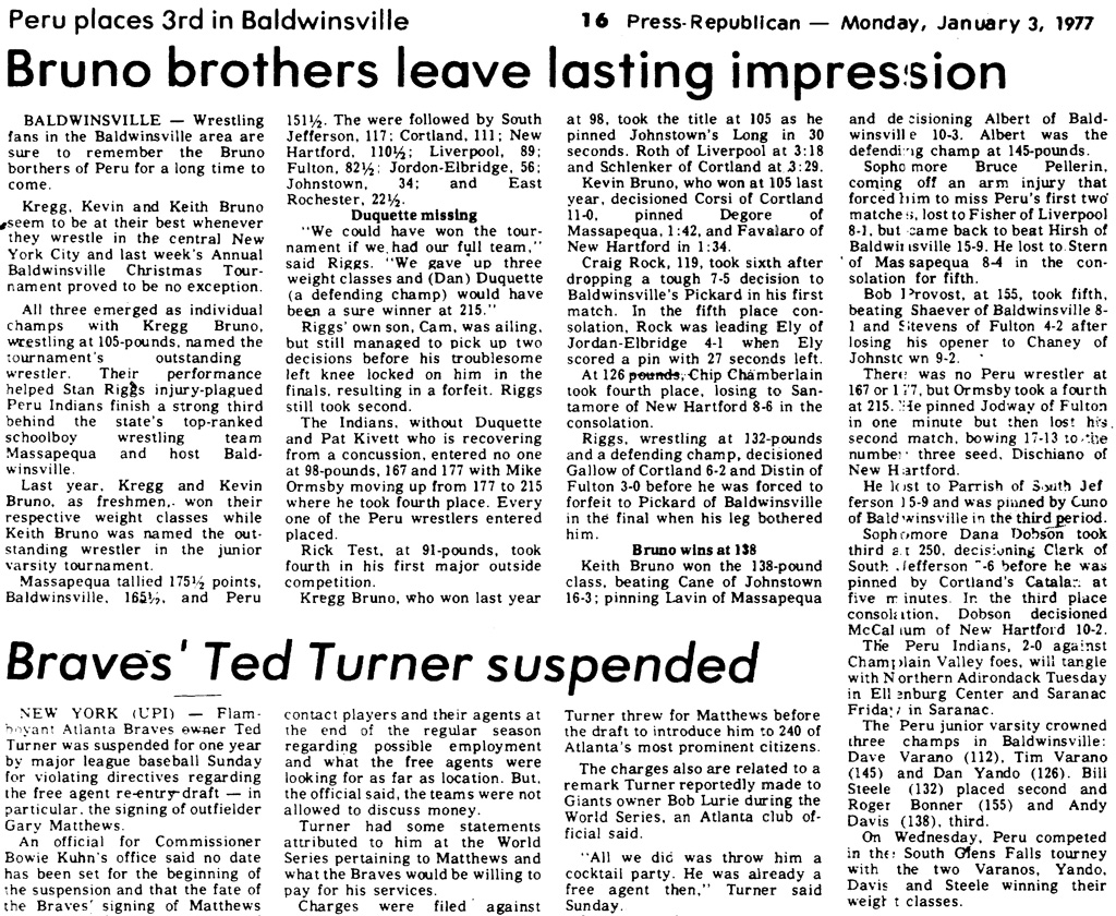138 Keith Bruno (Peru) > Barry Albert (Baldwinsville) decision 8-3