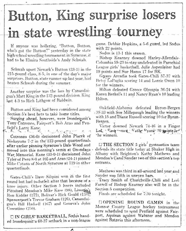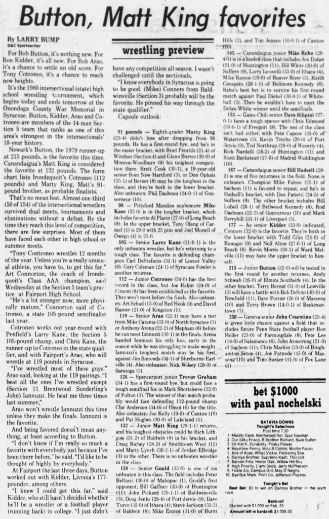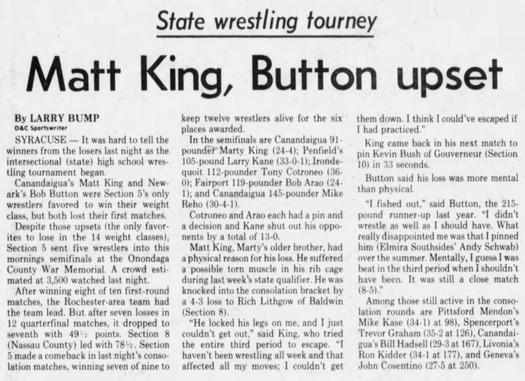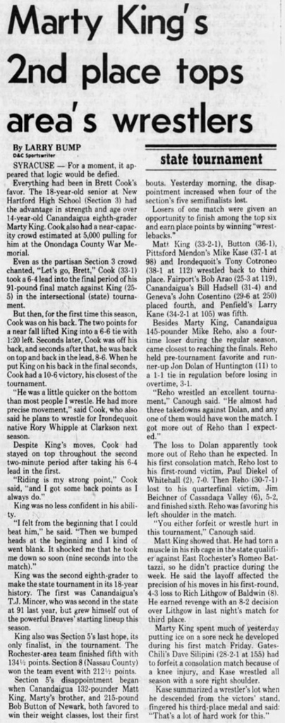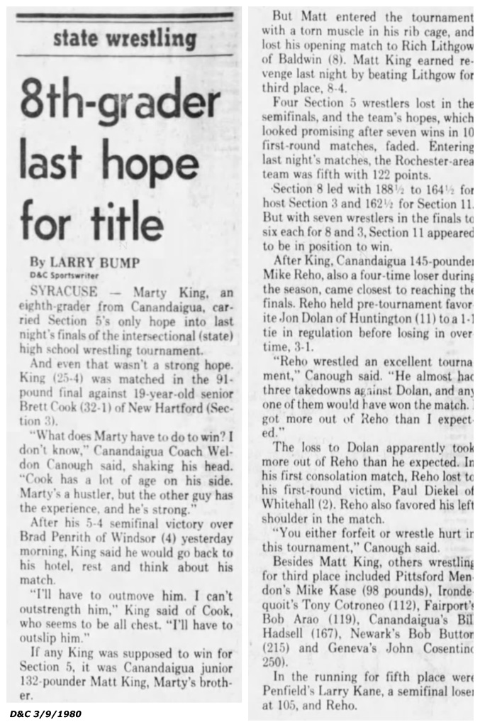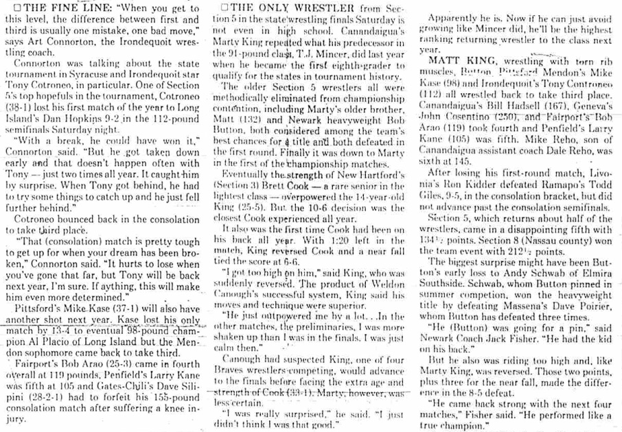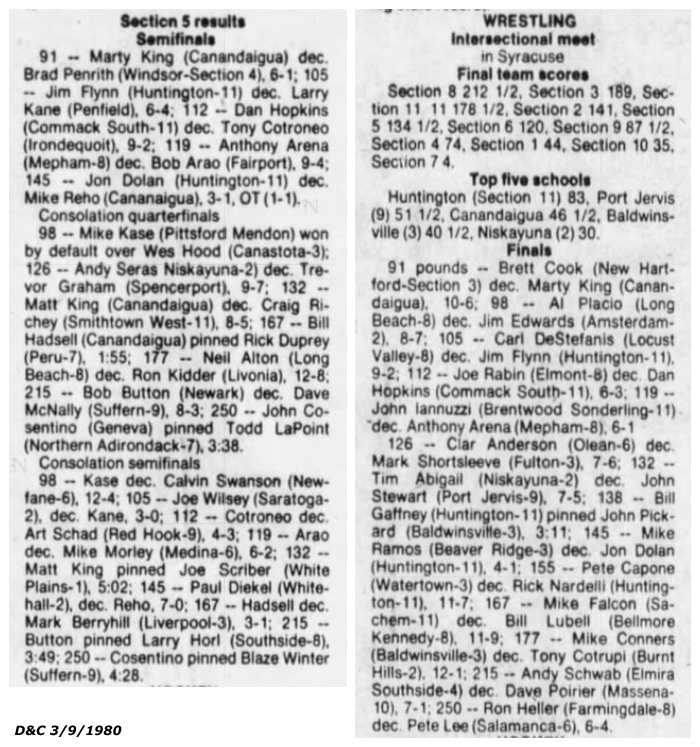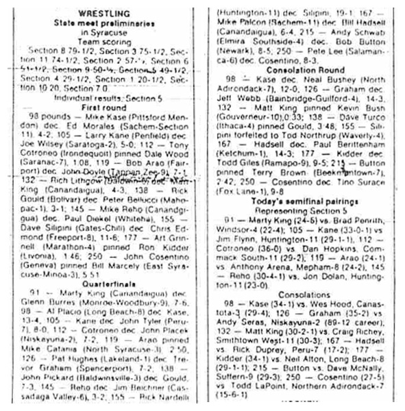 91 Marty King (Canandaigua/Section V) > Brad Penrith (Windsor/Section II) decision 6-1