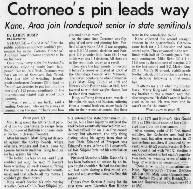 112 Dan Hopkins (CS/Section XI) > Tony Cotroneo (Irondequoit/Section V) decision 9-2