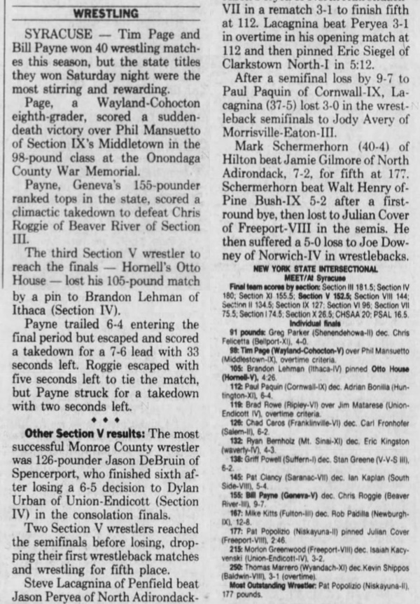 34th Annual NYSPHSAA Intersectional Wrestling Championships