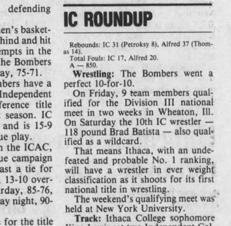 Mike Cronmiller (IC) > Curt Jenkins (RIT) major decision 13-5