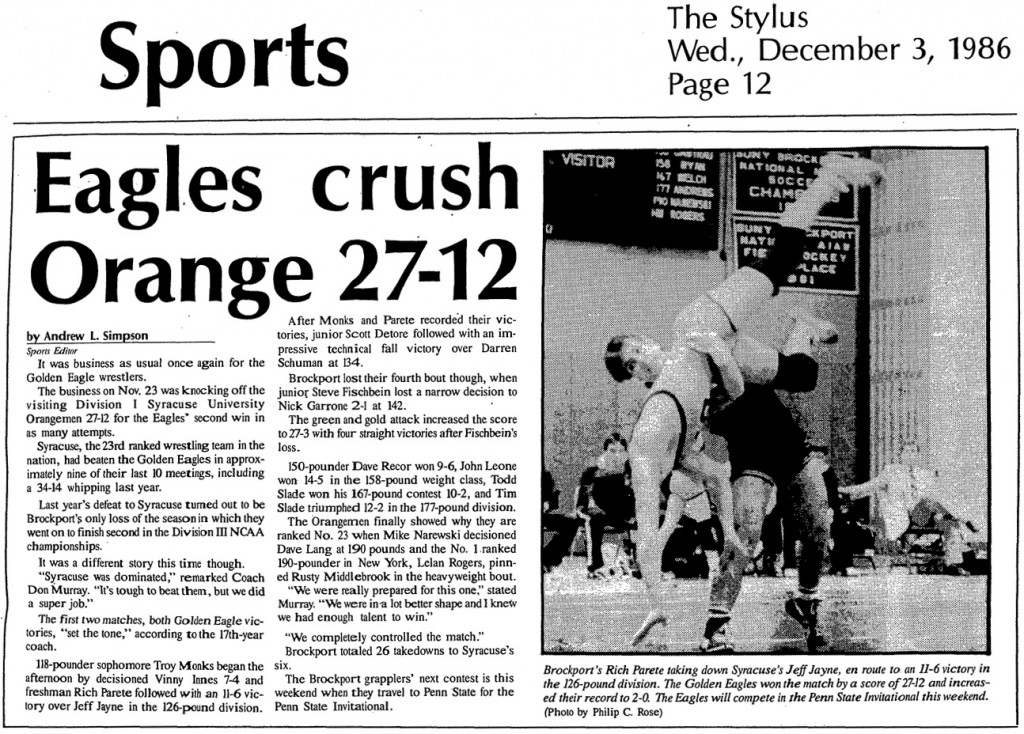 Rich Parete (Brockport) > Jeff Jayne (SU) decision 11-6