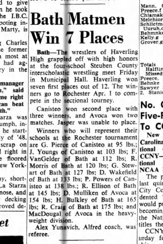 Bath Haverling [NY] 7, Canisteo [NY] 3, Avoca [NY] 2,