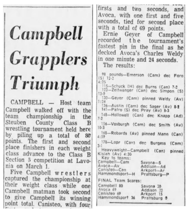 Ken Tatro (Savona) > Ron Pray (Avoca) decision 8-3