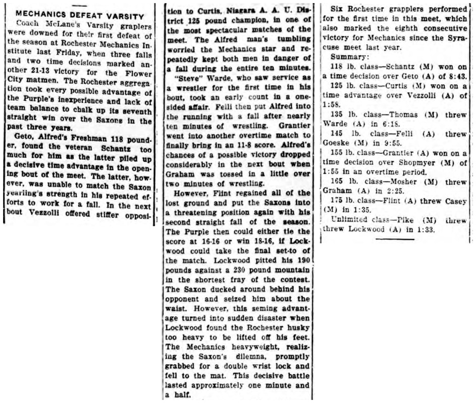 Rochester Athenaeum and Mechanics Institute 21, Alfred University 16