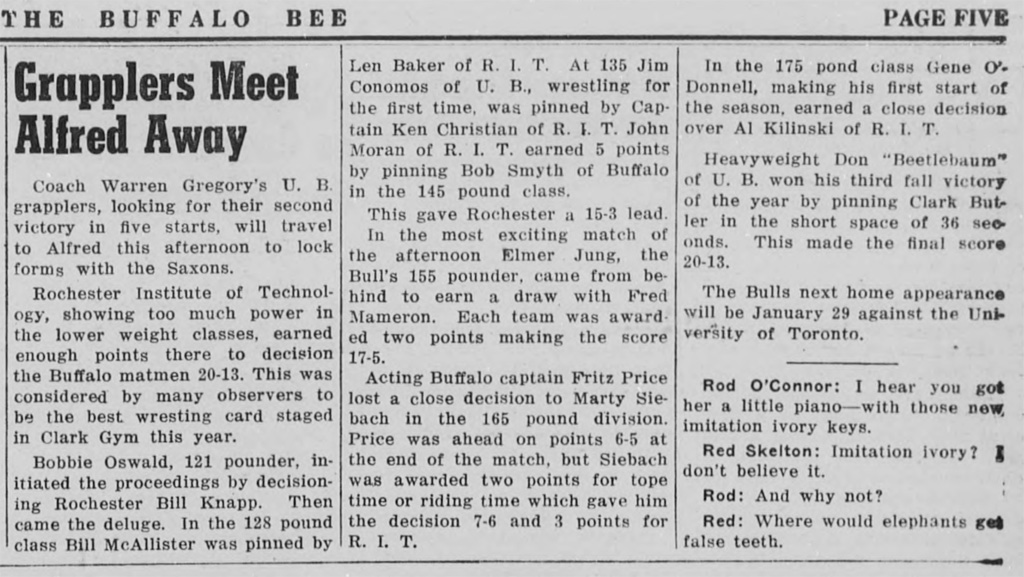 Don Beitelman (UB) > Clark Butler (RIT) fall