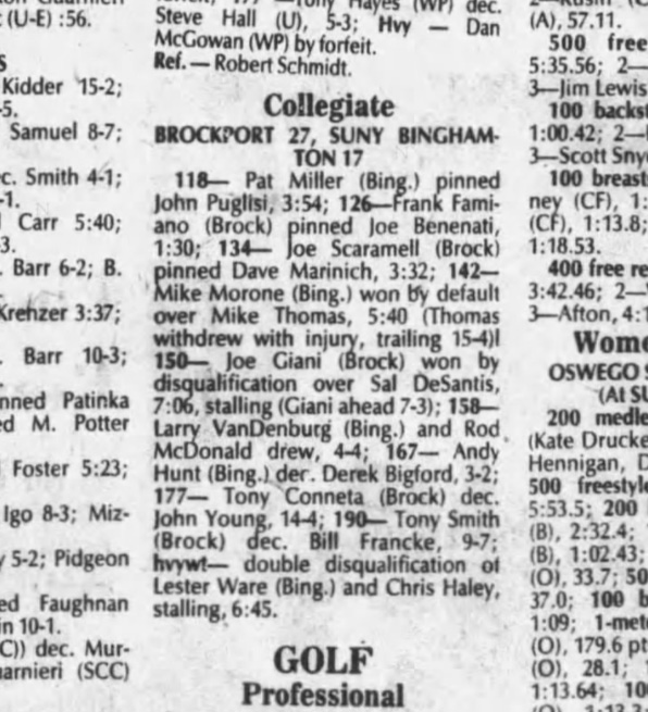 Joe Scaramell (Brockport) > Dave Marinich (BU) fall 3:32