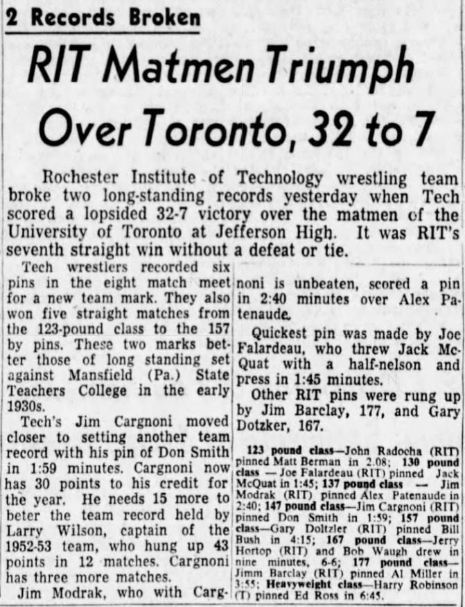 Jim Cargnoni (RIT) > Don Smith (UT) fall 1:59