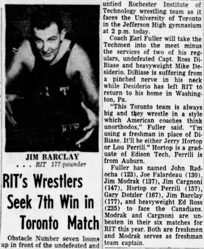 Jim Barclay (RIT) > Al Miller (UT) fall 3:55