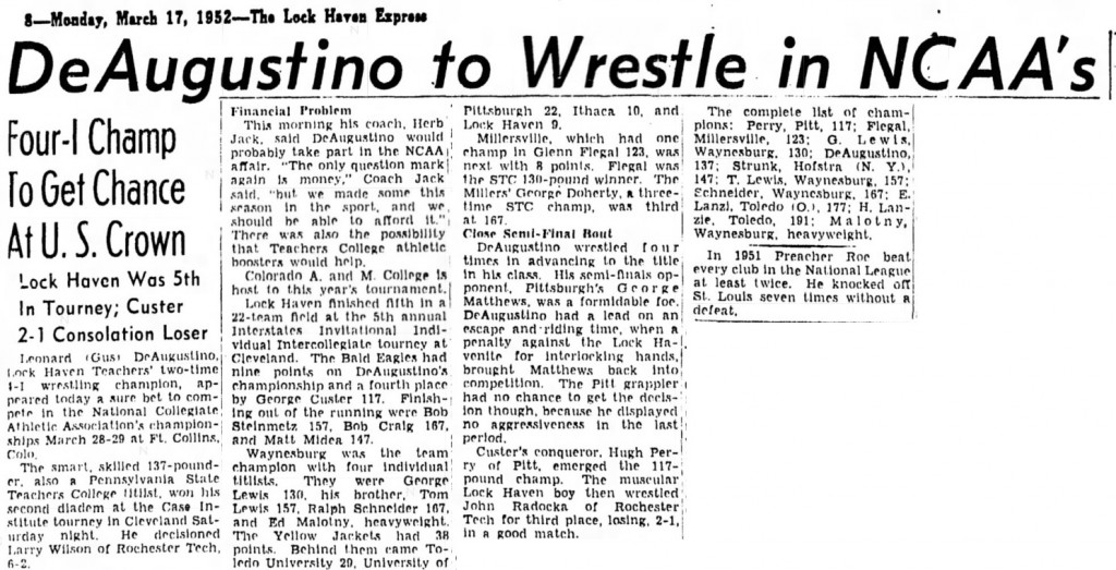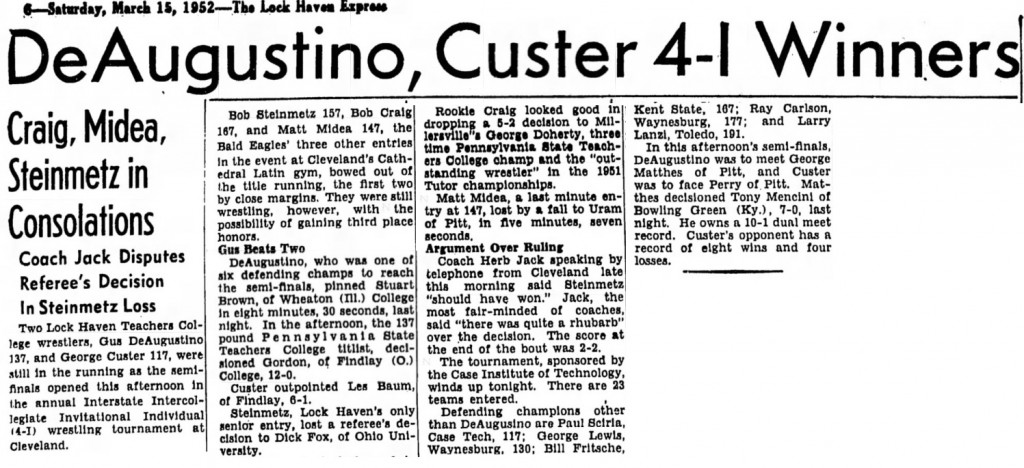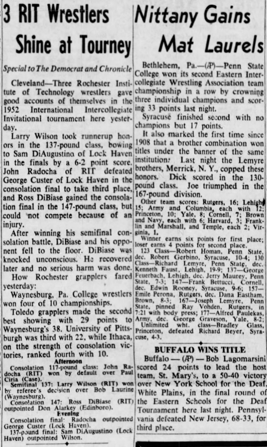 137 Leonard DeAugustino (LHU) > Larry Wilson (RIT) decision 6-2