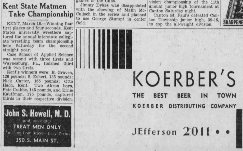 Kent State University [OH] 39, Case School of Applied Science [OH] 27, Waynesburg University [PA] 11, University of Akron [OH] 3, Rochester Athenaeum and Mechanics Institute [NY] 2, Washington & Jefferson College [PA] 1,