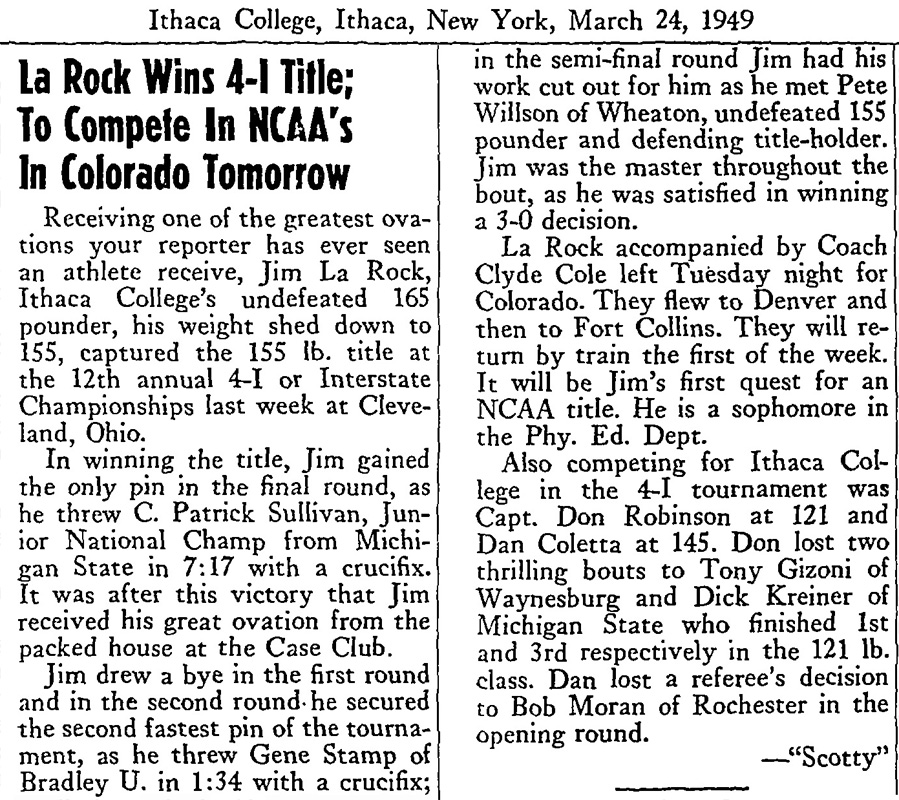 155 James LaRock (IC) > Pat Sullivan (MSU) fall 7:17