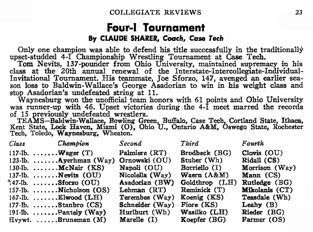 Tom Nevitz (OU) > Joe Nicolella (WU)
