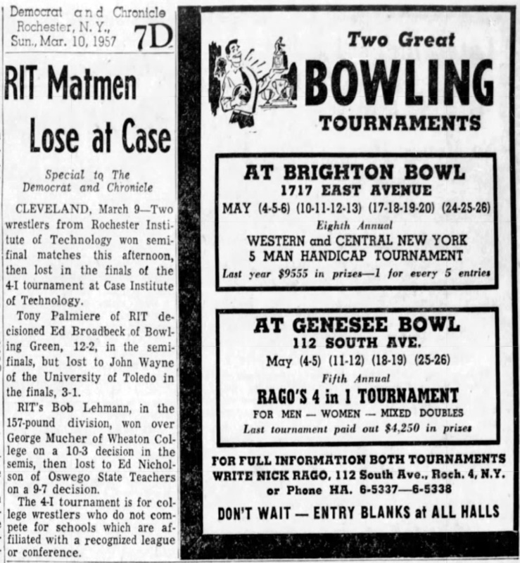 Ed Nicholson (Oswego) > Bob Lehman (RIT) decision 9-7