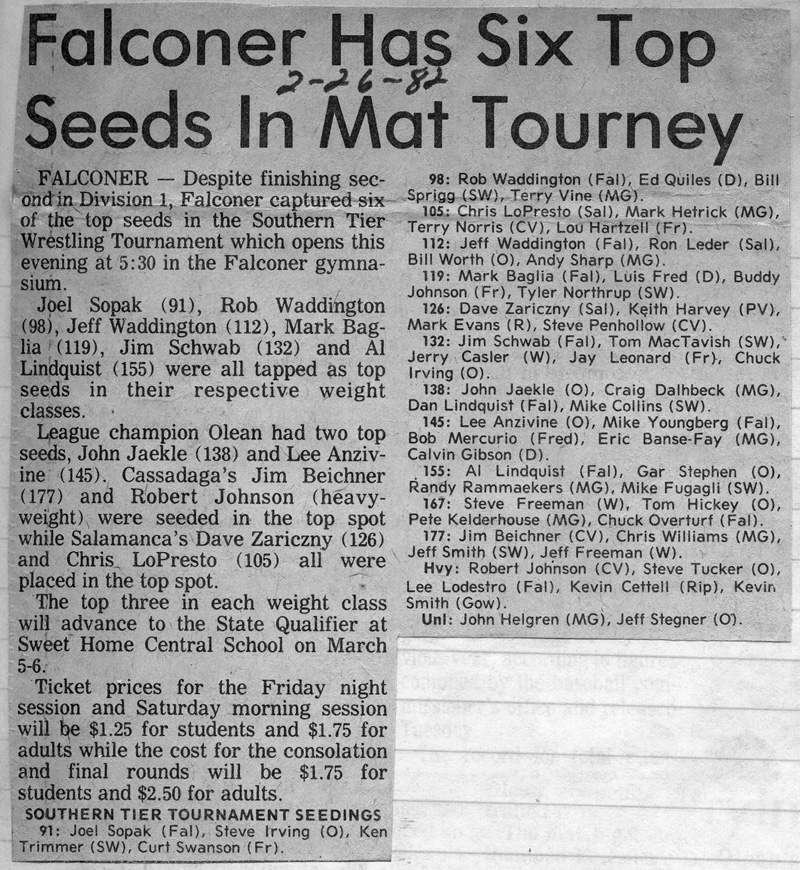 Lee Anzivine (Olean) > Mike Youngberg (Falconer) decision 8-4
