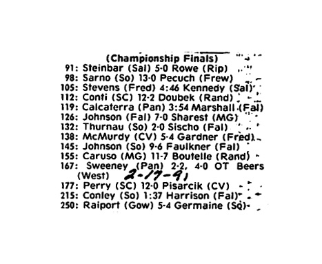 Chris Stevens (Southwestern) > Jim Kennedy (Salamanca) fall 4:46
