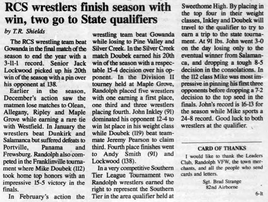 Raiport (Gowanda) > Russ Germaine (Southwestern) decision 5-4