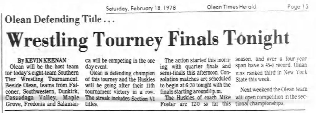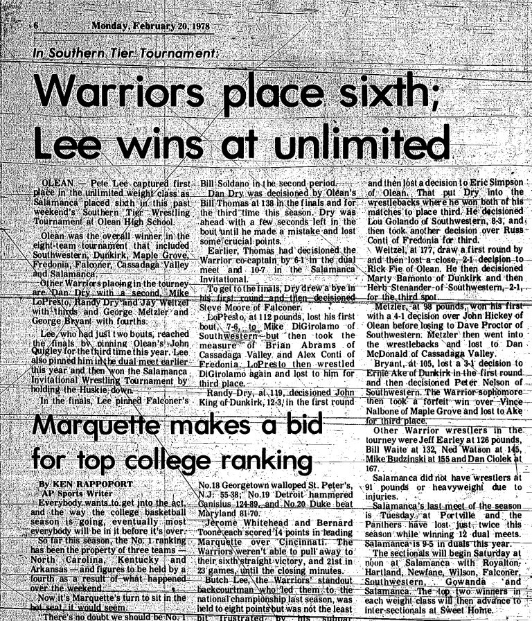 Bill Thomas (Olean) > Dan Dry (Salamanca) decision 6-3