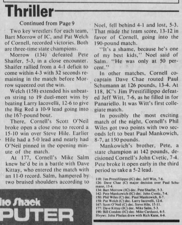 Jim Pestifilippo (IC) > Jeff Witt (CU) decision 7-6