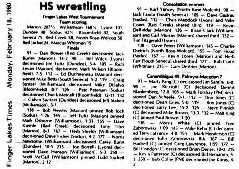 Joe Ricciotti (Canandaigua) > Dennis Blankenberg (PM) superior decision 12-0