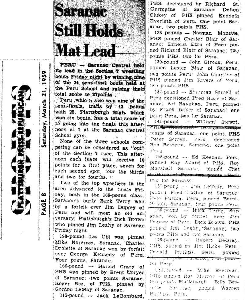 Dick Brown (Plattsburgh) > Buck Terry (Saranac)